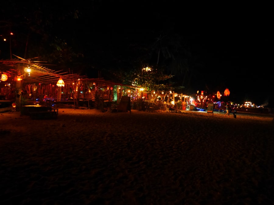 C’est probablement le meilleur souvenir que nous gardons de l’île ! Le soir à la tombée de la nuit, les restos et boui-boui qui se tiennent le long de la plage s’illuminent. Des centaines de bougies et de torches sont allumées…l’ambiance est géniale ! Pour info, sachez que la plage de Khlong Khong est la plus animée de Koh Lanta (mais ce n’est pas la seule !). Nous avons donc passé nos 3 soirées ici. Je n’ai pas d’adresse en particulier à conseiller, mais faites comme nous, laissez-vous guider au feeling pour une expérience les pieds dans le sable au top !